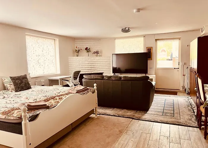 Das Charming Studio Flat In Sollentuna, Stockholm in Stockholm liegt 15 km vom Flughafen Stockholm/Bromma entfernt. Gästen steht WLAN zur Verfügung, und für alle, die mit dem Auto anreisen, gibt es Parkplätze vor Ort.