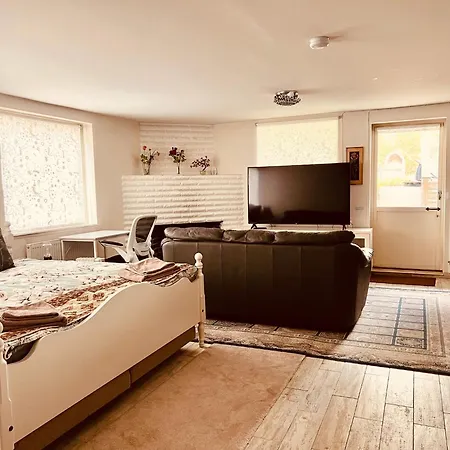 The apartment includes self-catering facilities like a microwave oven, an electric kettle, and a fridge for guests' convenience. Bromma Stockholm airport is at a 15-minute driving distance, and Snickarevaegen bus stop is only steps away from Charming Studio Flat In Sollentuna, Stockholm.